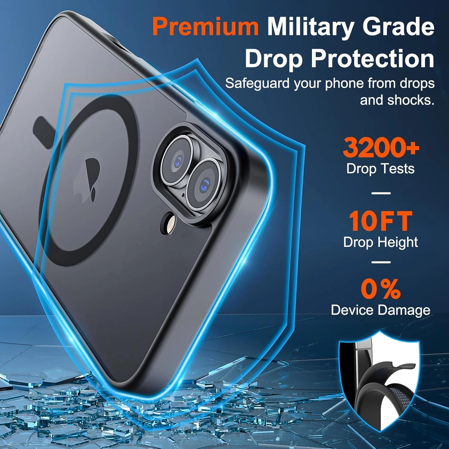 • Shock Protection: Passing military drop tests up to 10 feet, your device is effectively protected from violent impacts and drops